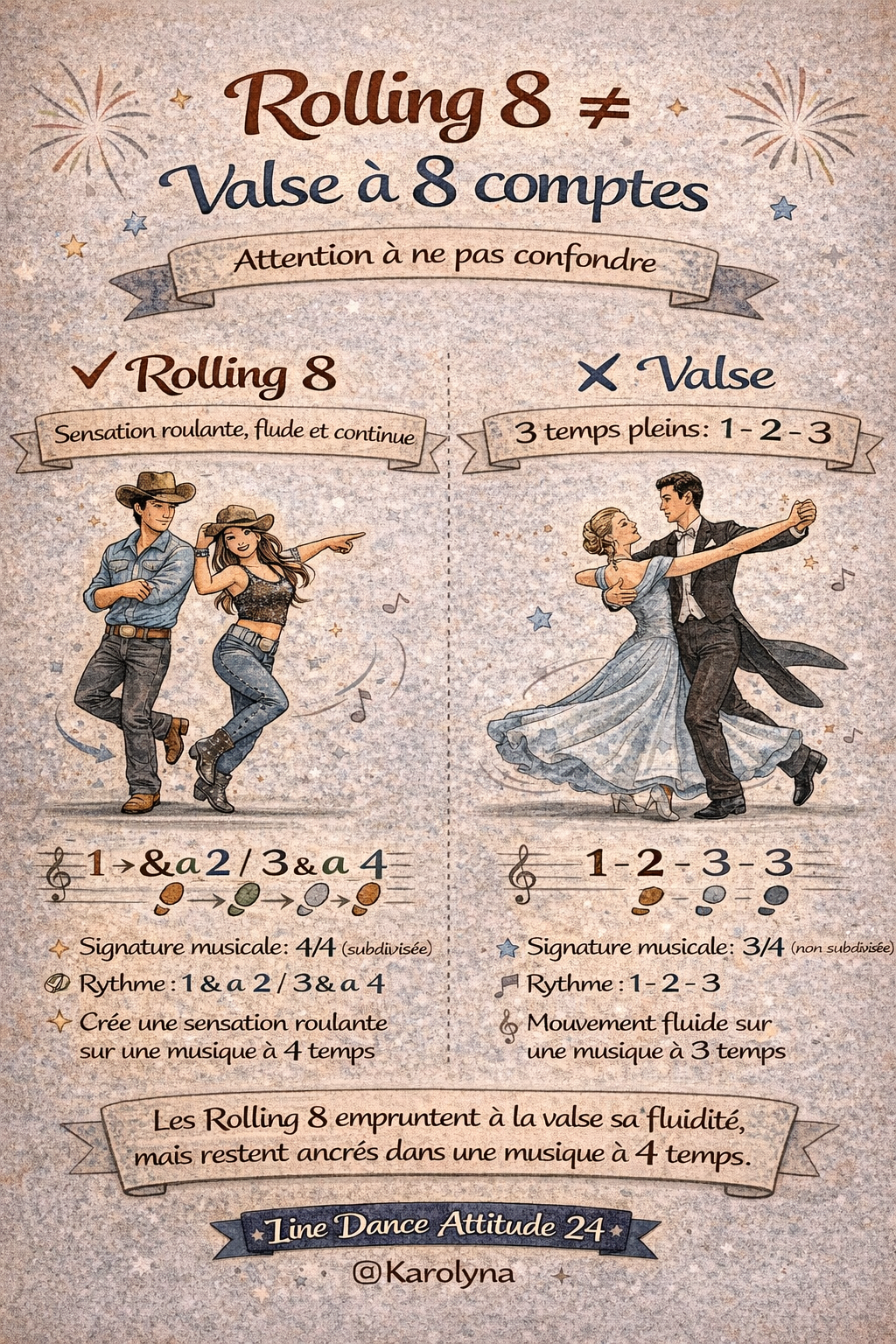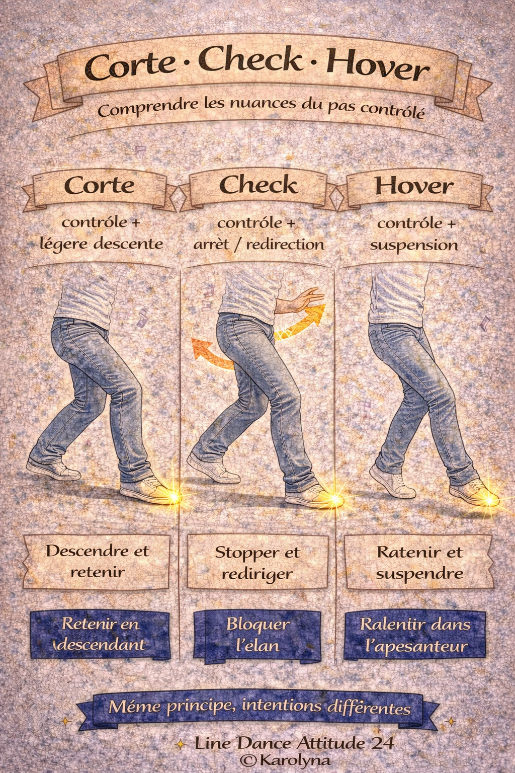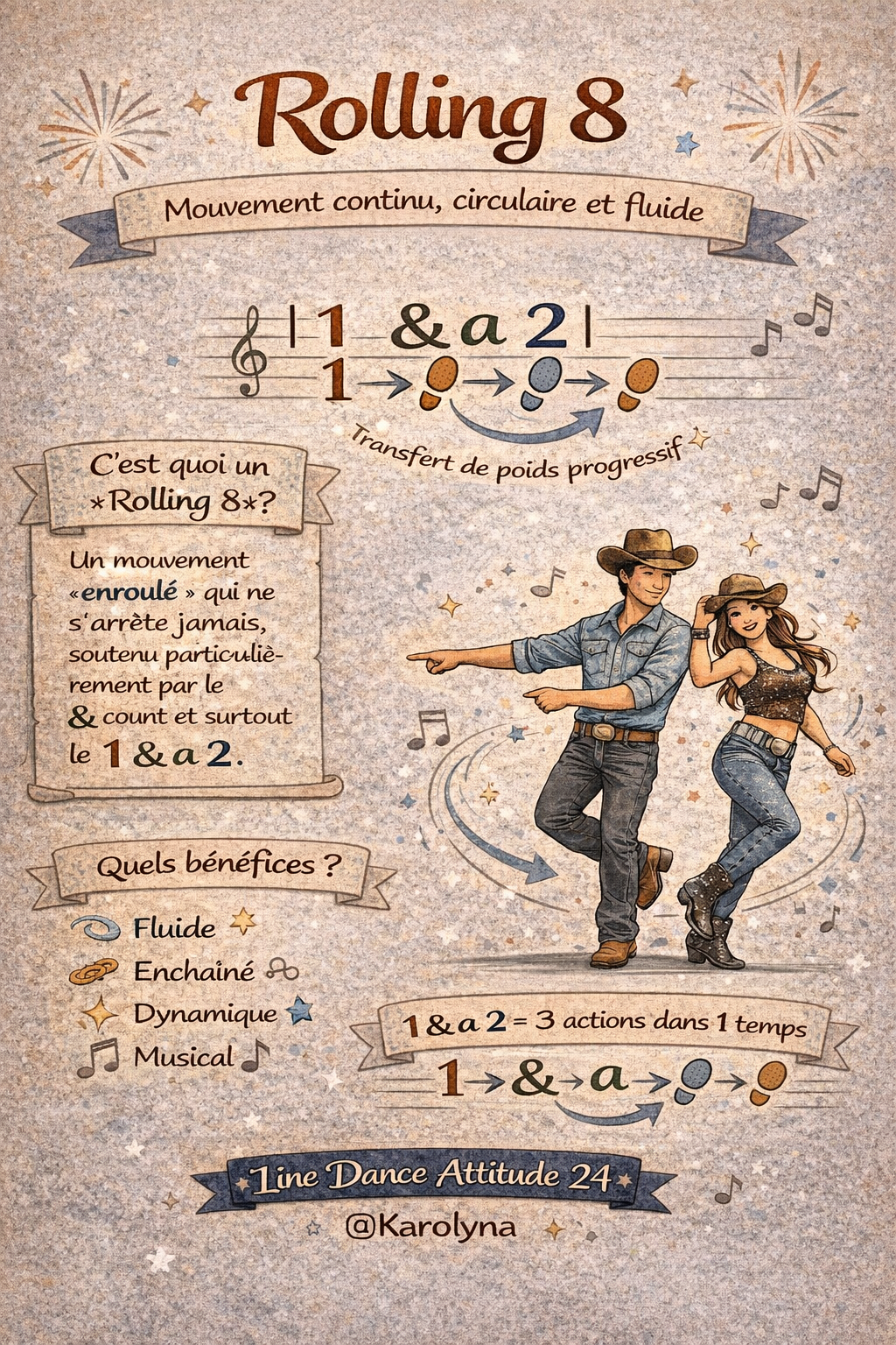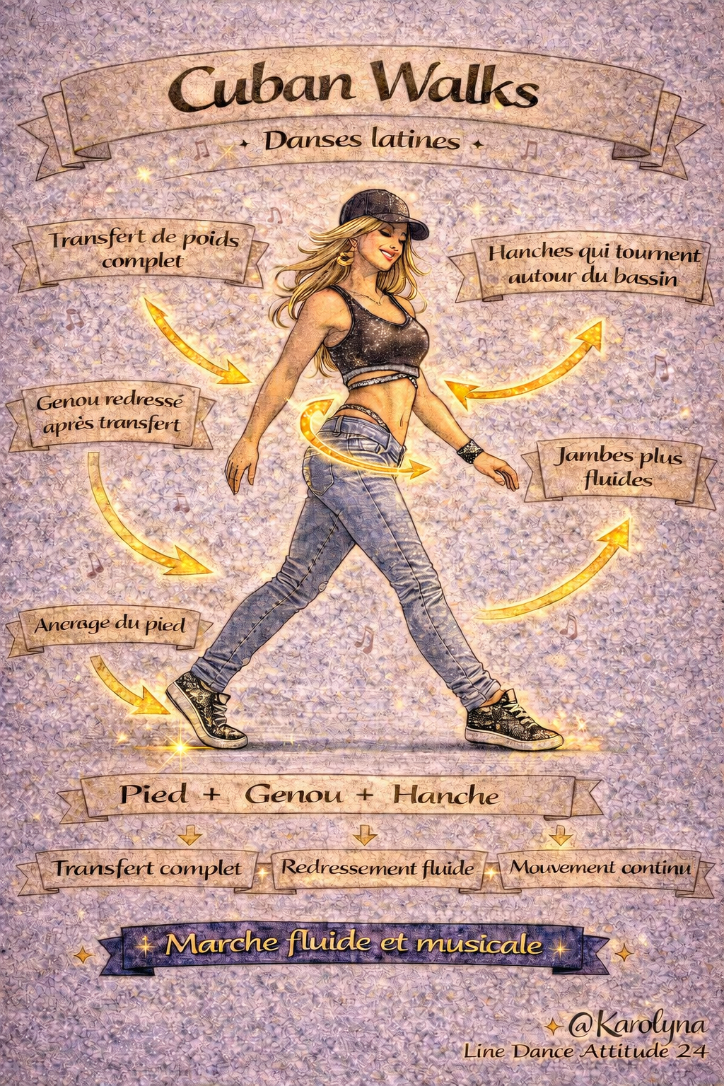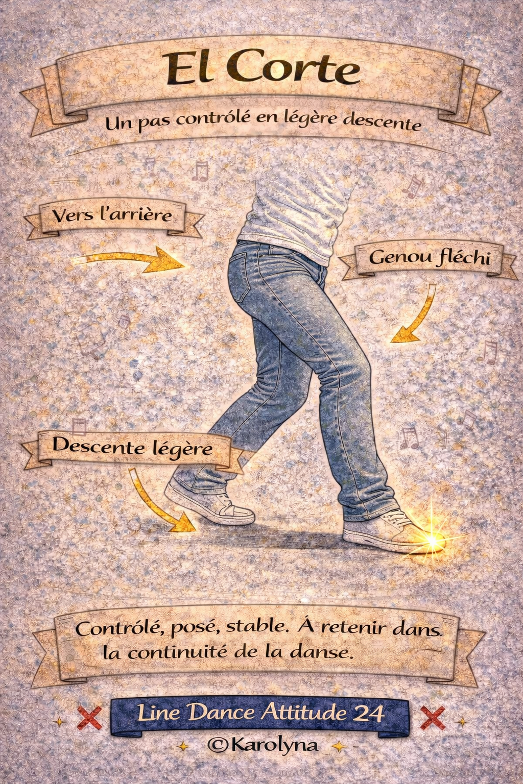 Très utilisée dans les danses d'influence latine, elle trouve aussi toute sa place en Line Dance, lorsqu'on cherche à enrichir le mouvement sans l'alourdir.